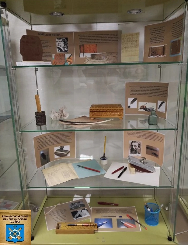 Заводоуковский краеведческий музей в СОШ №3 открыл новую выставку под названием «От пера до компьютера». Экспозиция приглашает посетителей отправиться в увлекательное путешествие сквозь века – проследить, как развивалась письменность от древнейших наскальных рисунков до современных цифровых технологий. Особое внимание уделено экспонатам, которые станут настоящим открытием для современных школьников. Среди них: